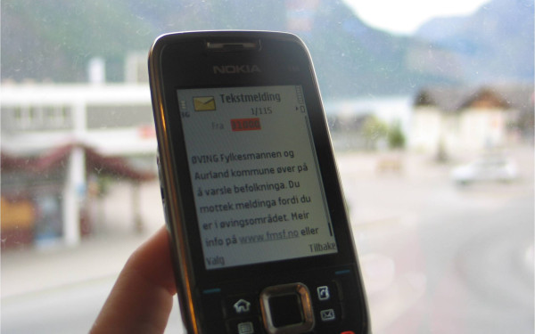 Korleis kan ein kommune varsle dei som er i eit område om klimarelaterte naturfarar? Fylkesmannen i Sogn og Fjordane øver på dette i Aurland kommune 2. juni.